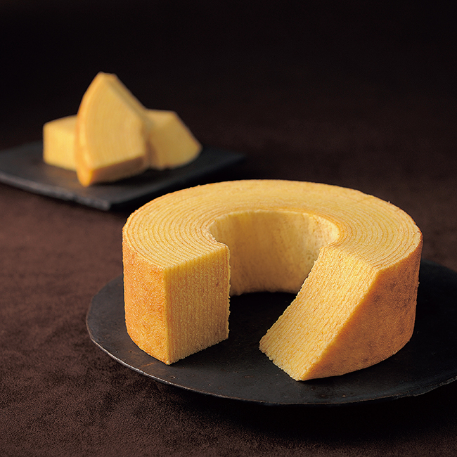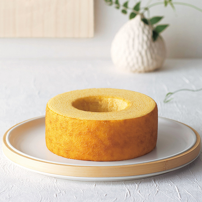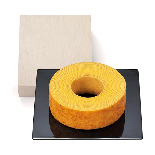 北海道産生クリームを使用した、しっとりとしたやさしい味わいでたっぷりサイズのバウムクーヘンを木箱に詰めて贈ります。