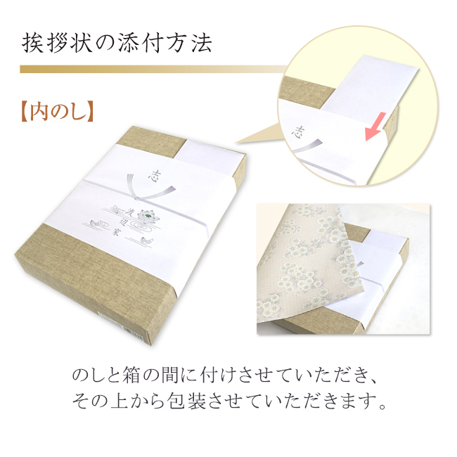 ※サイズの小さい商品は、挨拶状が熨斗で隠れてしまう場合がございますのでご了承ください。