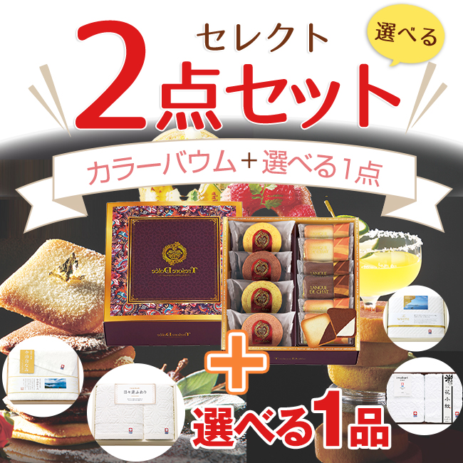 お客様が選んだ1~4のお好きな商品1点とカラーバウムの2点セットです。(手提げ袋付)
