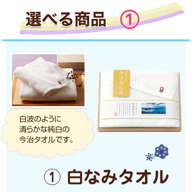 白なみタオル ●フェイスタオル(34×75cm)1P●日本製●原材料:綿100%●木箱:19×26×2.2cm |