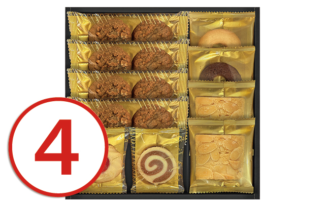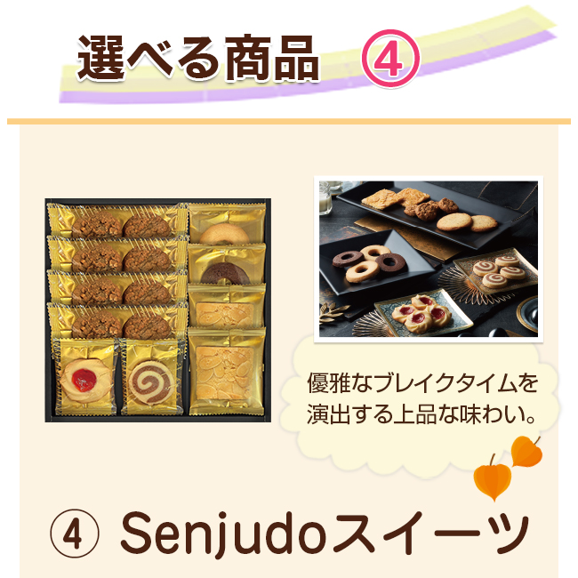 Senjudoスイーツ ●クッキー(プチコーヒー2枚入)×4、クッキー(トフィーアーモンド)×2、クッキー(プチラズリン・うずまき・リングバター・リングココア)×各1●賞味期限:製造日より180日●アレルギー:【小麦・卵・乳】●化粧箱:21×20×4cm |