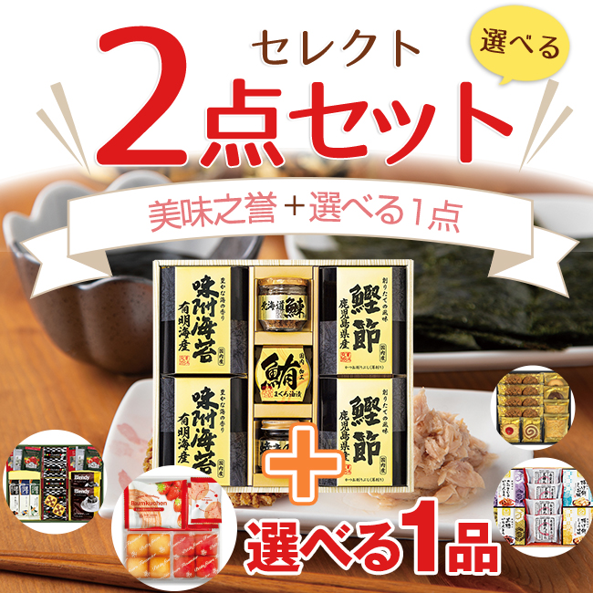 お客様が選んだ1~4のお好きな商品1点と美味之誉の2点セットです。