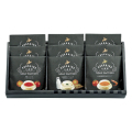 | 内容 | 北海道産 スープ(じゃがいものビシソワーズ×2・南蛮海老のビスク×1・生クリームのクラムチャウダー×2)、こだわりのスープ(完熟とまとのミネストローネ×2・海鮮の旨みブイヤベース×2) 賞味期限:常温で製造日から180日間 |