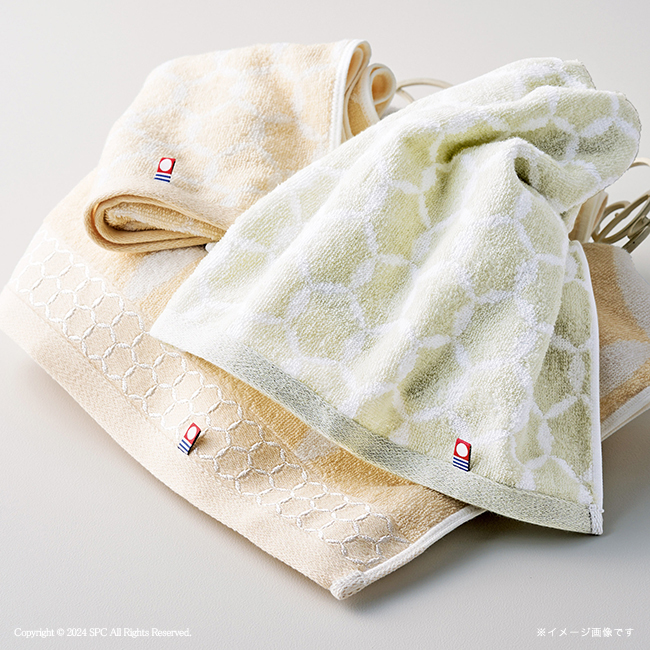 人とのつながり「縁」と「円」をかけ合わせ、繋がりながら広がってゆく様を今治産地の特徴でもあるジャカード織で表現しました。