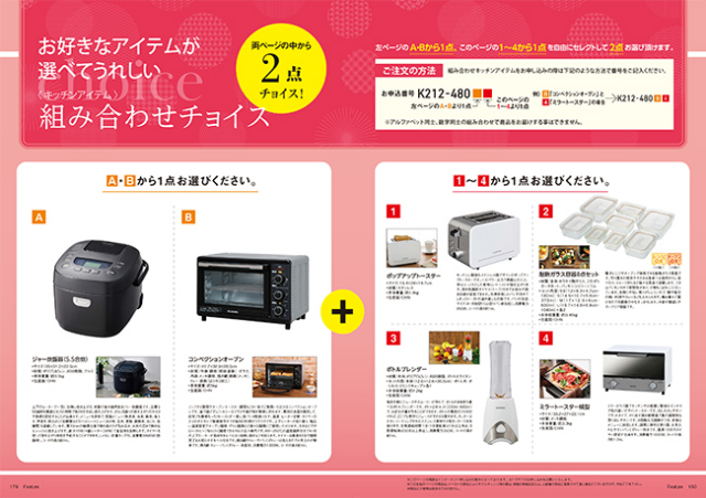 | STEP1:カタログの豊富な商品の中から、お好きな商品をお選び下さい。 STEP2:ご希望の商品をハガキに記入の上、ポストに投函していただくだけ。 STEP3:品物はすみやかに宅配便などでご自宅に直接お届けいたします。 |